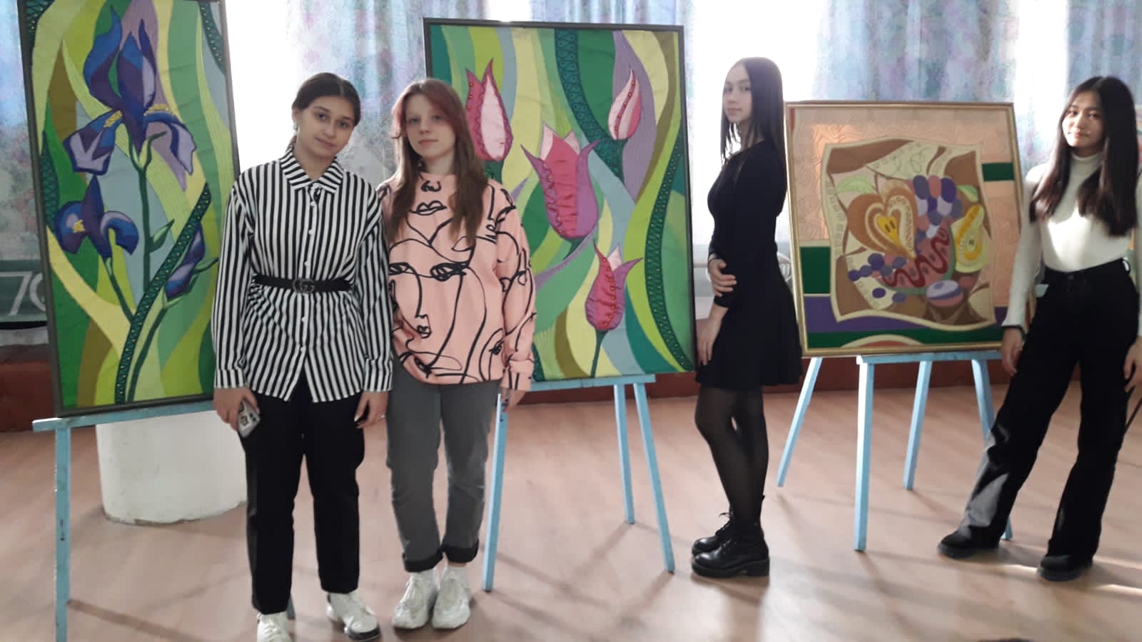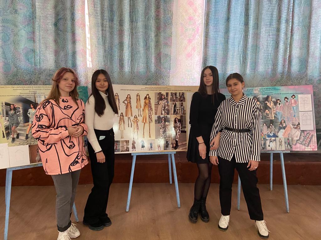 Бейнелеу өнері пәнінің мұғалімі Г.Б.Полушкинаның жетекшілігімен 8-сынып оқушылары «Тігін өндірісі және киім дизайны», «Киім дизайнері», «Графикалық дизайн», «Интерьер дизайны», «Шаштараз өнері» мамандықтары бойынша студенттер жұмыстарының көрмесін аралады.