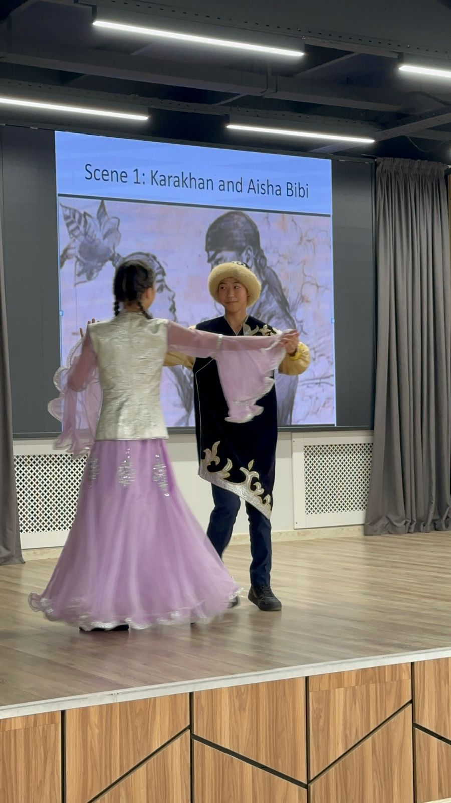 Ағылшын тілі онкүндігі аясында 8-сынып оқушылары «Айша бибі» шығармасы бойынша ағылшын тілінде театрландырылған қойылым көрсетті. Жетекшісі: ағылшын тілі пәні мұғалімі Оспанова Г.Ш. Бұл іс-шара оқушылардың тілді меңгеру деңгейінің жоғары екендігін ғана емес, сонымен қатар олардың әдеби материалды терең түсінуімен қатар шығармашылық әлеуетін де көрсетті.
