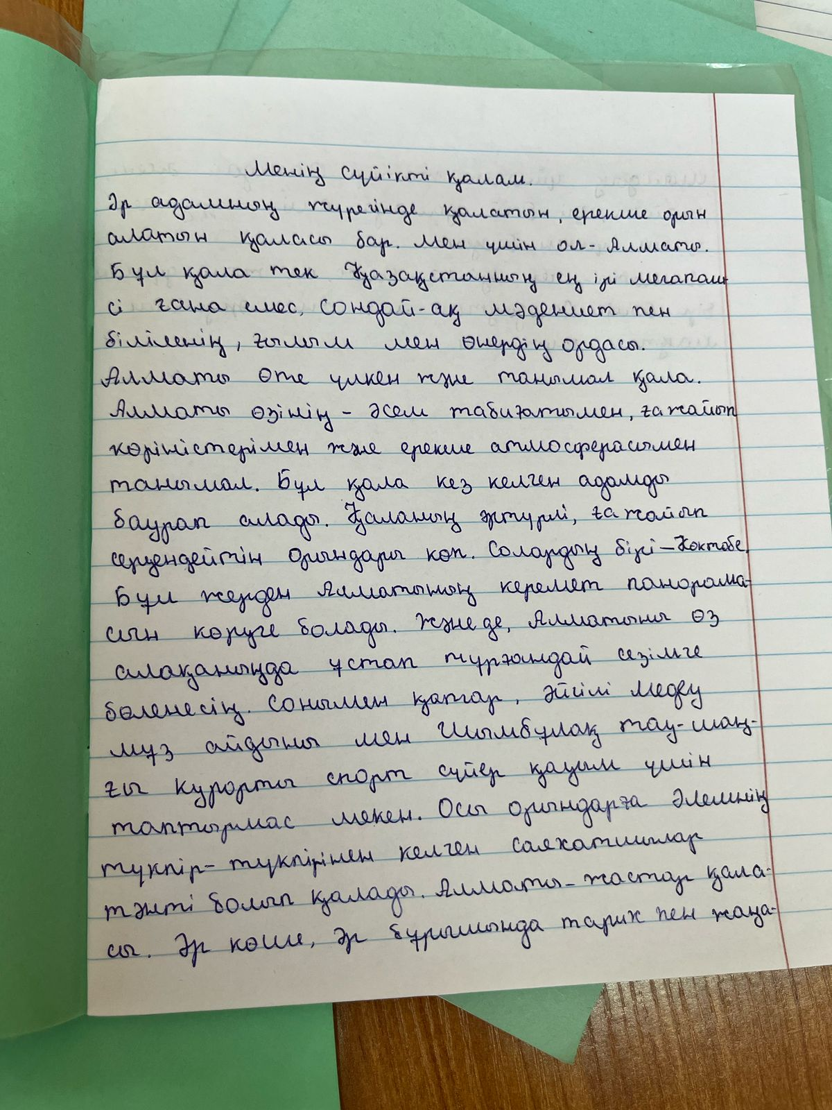 06 наурыз 2025 "Менің сүйікті қалам" "Таза Қазақстан" жалпы Республикалық акция аясындағы Алматы қаласы Білім басқармасының "Алматы - біздің ортақ үйіміз" науқанының іске асыру жоспары бойынша "Менің сүйікті қалам" эссе байқауы өткізілді.