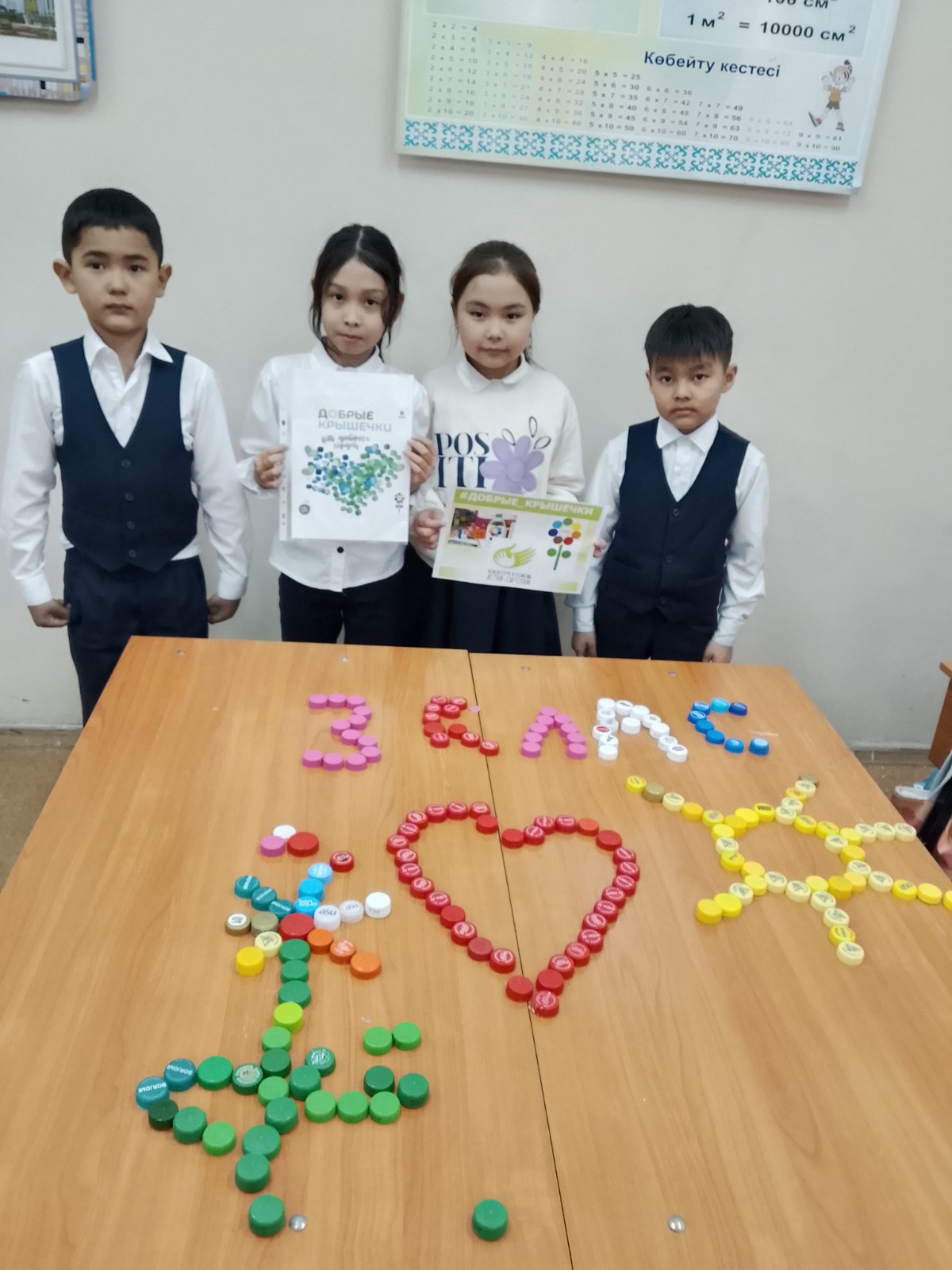 12 наурыз 2025 "Мейірімді қақпақтар" "Таза Қазақстан" жалпы Республикалық акция аясындағы Алматы қаласы Білім басқармасының "Алматы - біздің ортақ үйіміз" науқанының іске асыру жоспары бойынша "Мейірімді қақпақтар" жинау науқаны өткізілуде.