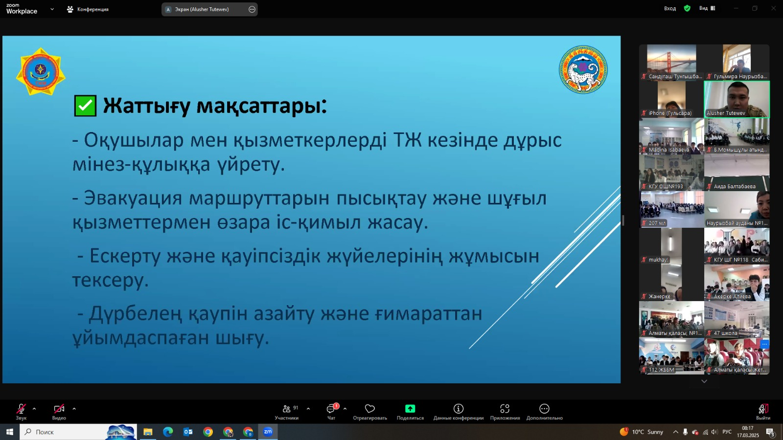 17 наурыз 2025 «Көмек» бағдарламасы бойынша сынып сағаты 17 наурыз күні «№83 гимназия» КММ-де 5-8 сыныптар арасында «Көмек» бағдарламасы бойынша сынып сағаты өтті. «Жер сілкінісі» бөлімі бойынша тақырыптар түсіндірілді.