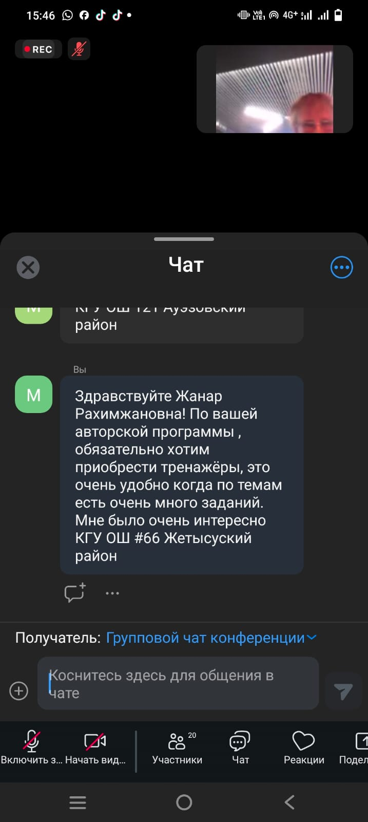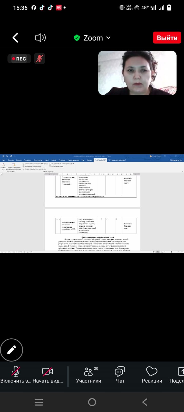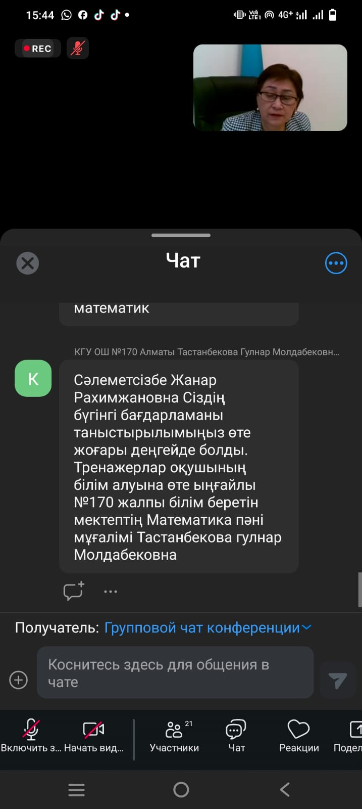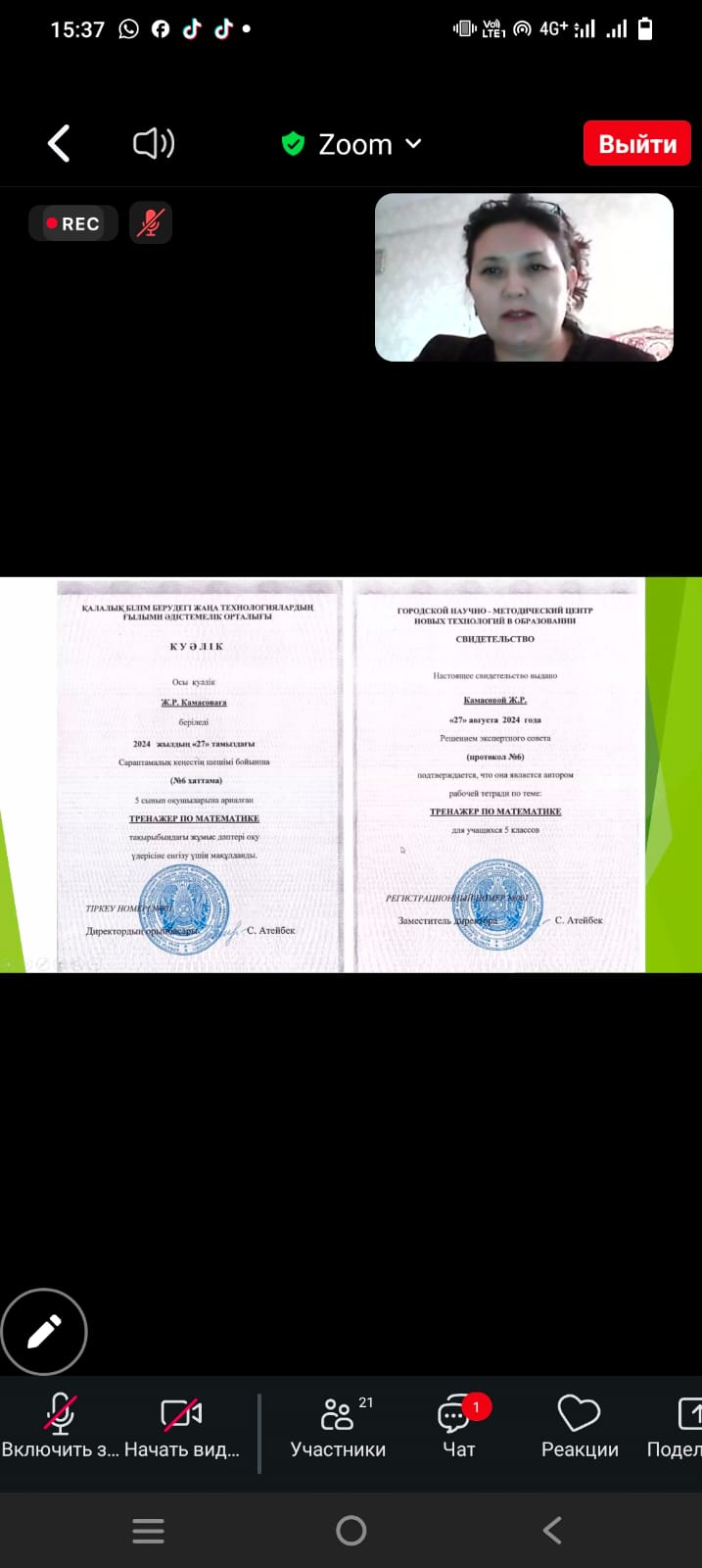 13.03.2025 жылы математика мұғалімі Ж. Р. Камасова "Искусство решения текстовых задач ", "Тренажеры по математике " тақырыптарында авторлық бағдарлама бойынша тәжірибені тарату мақсатында қалалық вебинар өткізді.