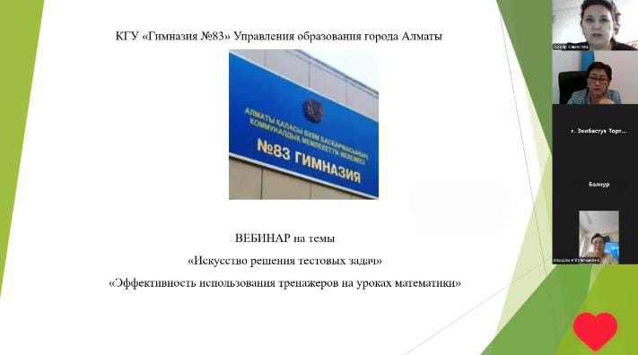 Гимназия №83 » Ақпарат » "Искусство решения текстовых задач ", "Тренажеры по математике " тақырыптарында авторлық бағдарлама