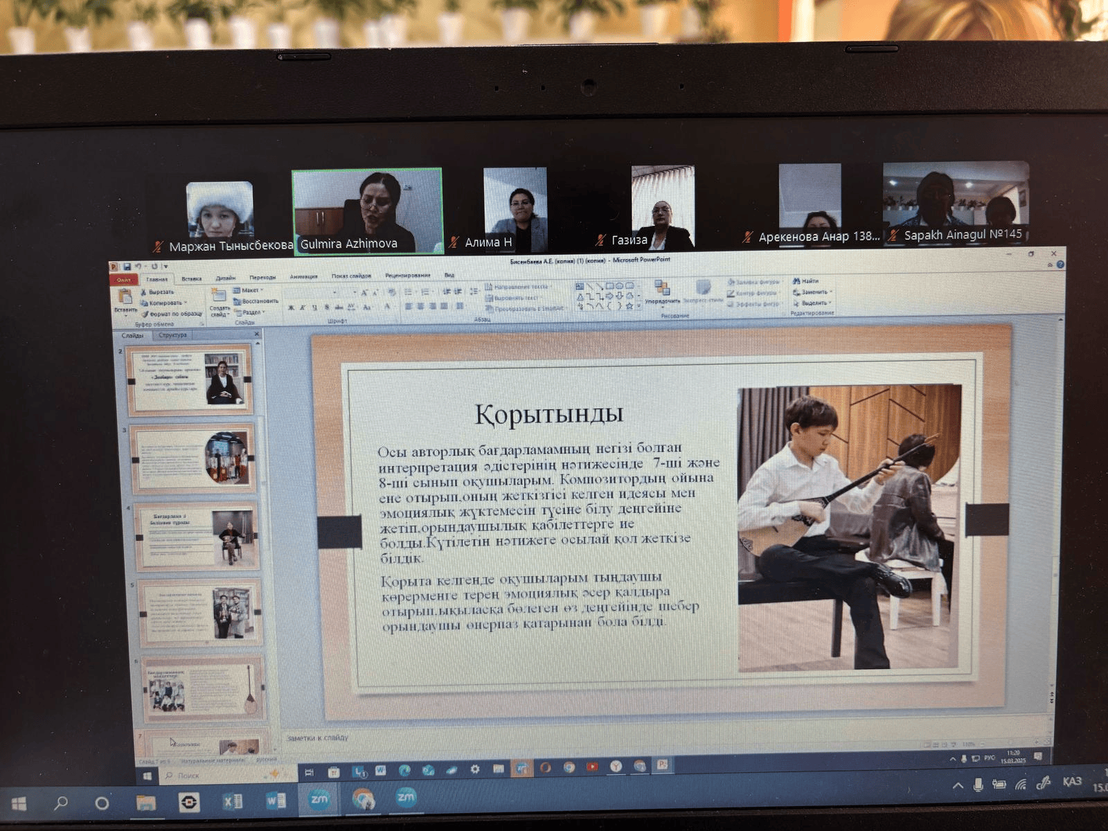 Тақырыбы: "Музыкалық сауаттылықты дамытудың жаңа жолдары: Авторлық бағдарлама тәжірибесі" Мақсаты: Музыкалық сауаттылықты дамытудың заманауи әдістерін қарастырып, авторлық бағдарламаның тәжірибесін бөлісу арқылы оқушылардың музыкалық білімін жетілдіру.