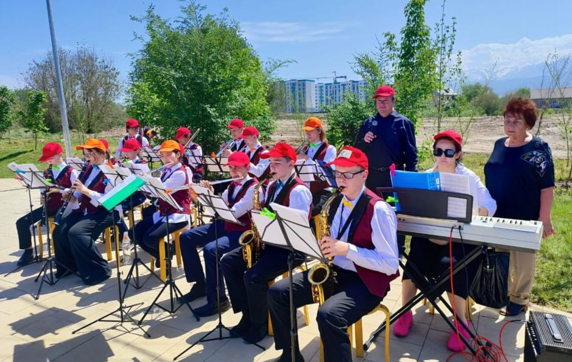08 мамыр 2025 Ардагерлерге арналған аллеяның ашылу салтанаты №83 гимназияның үрмелі аспаптар оркестрі «Жас қанат» шағын ауданында Ұлы Отан соғысы ардагерлеріне арналған аллеяның ашылуына белсене қатысты.
