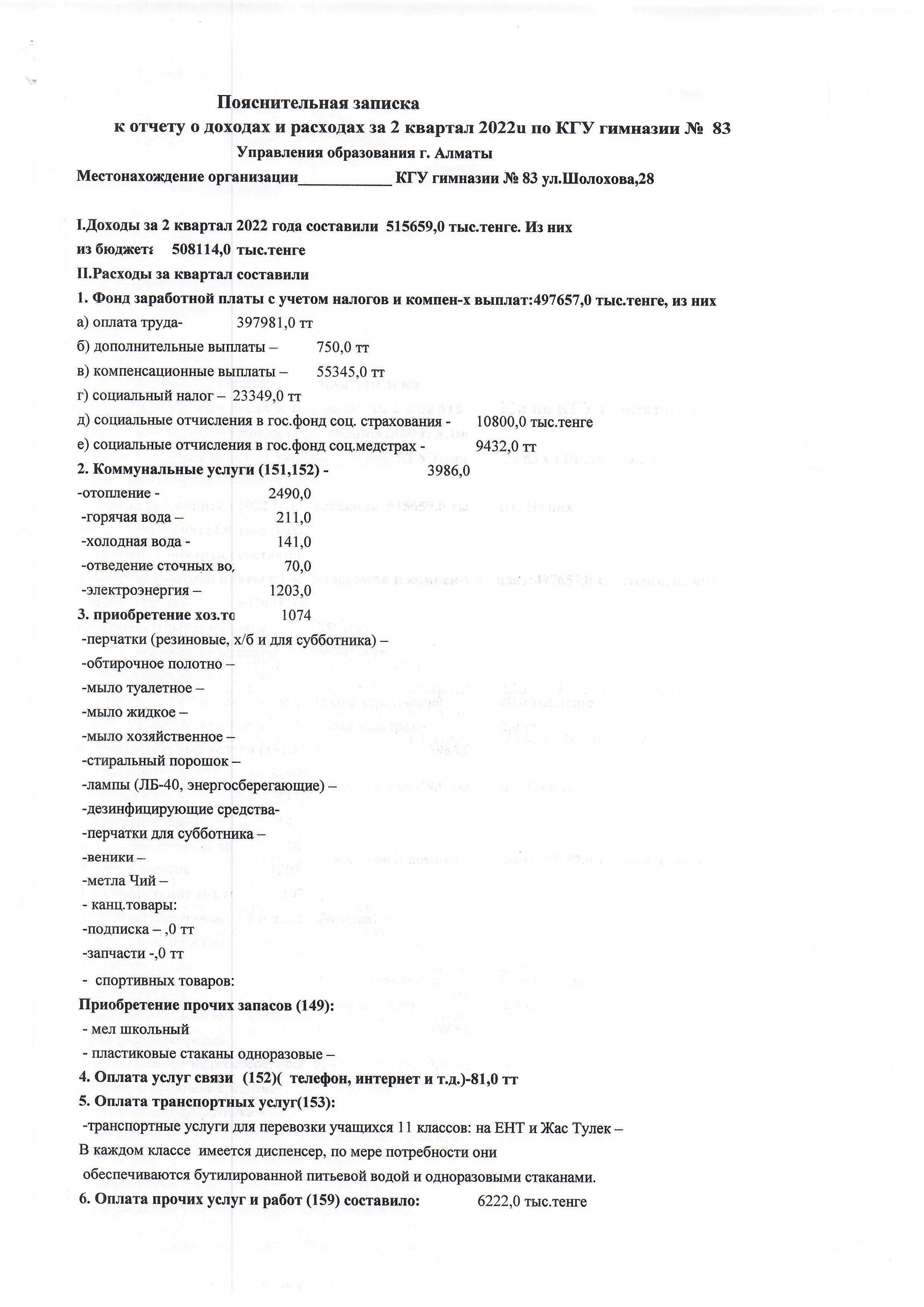 » ОТЧЕТ О ДОХОДАХ И РАСХОДАХ ЗА 2 КВАРТАЛ 2022 ГОДА