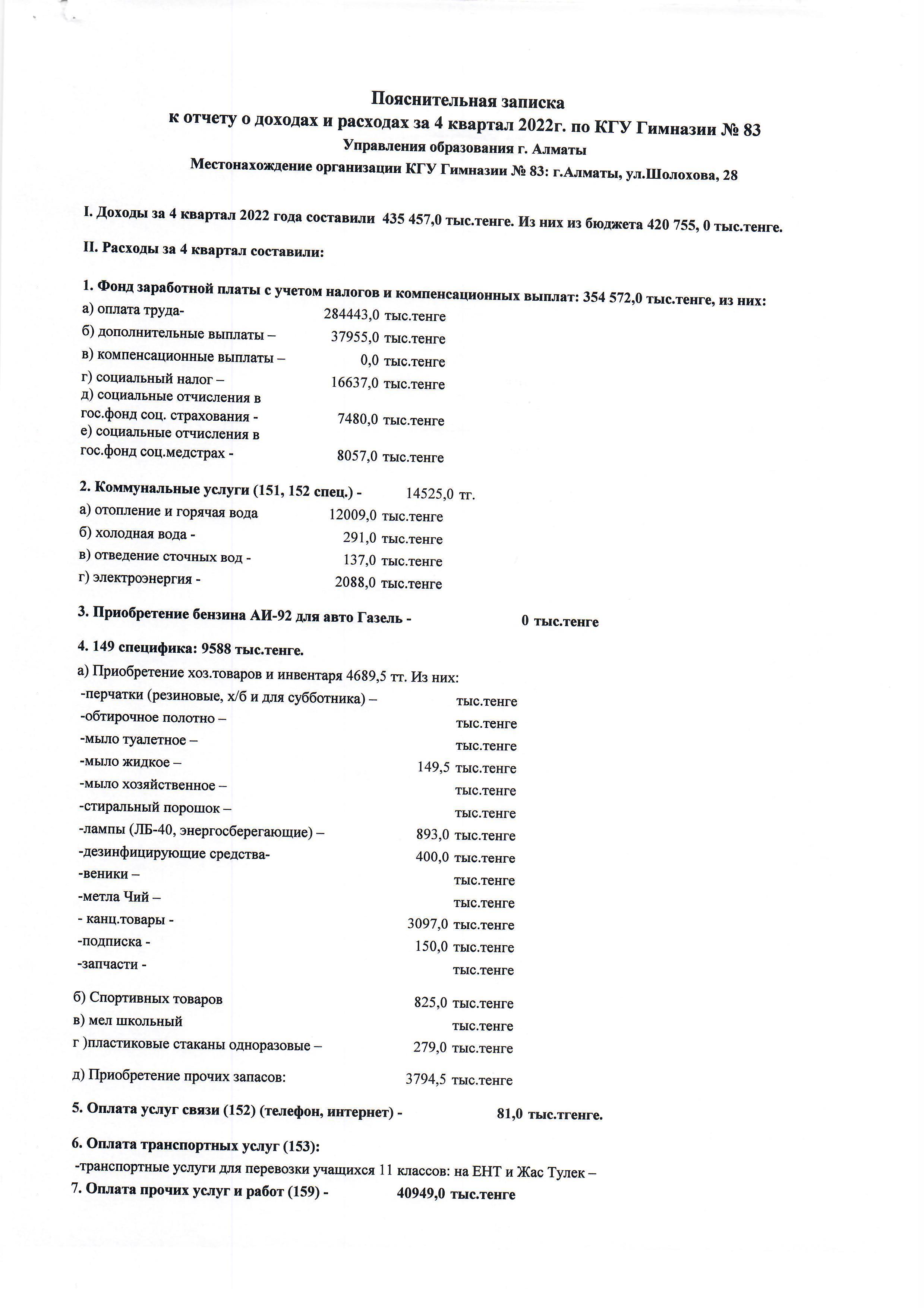 » ОТЧЕТ О ДОХОДАХ И РАСХОДАХ ЗА 4 КВАРТАЛ 2022 ГОДА