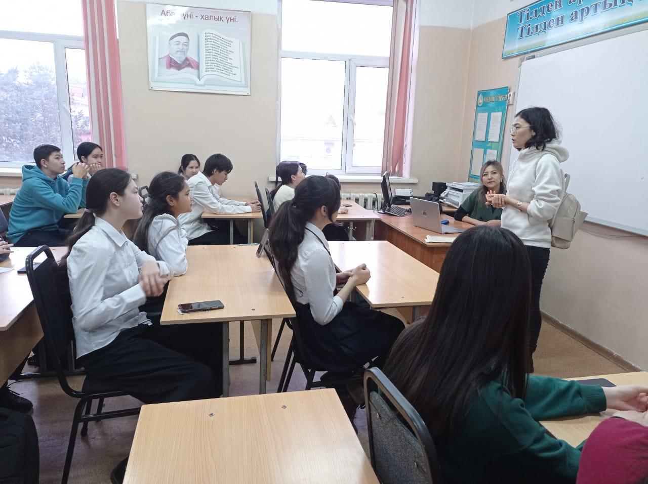 9-сынып оқушыларымен кездесуде ол Лингвистикалық колледжде аудармашылар даярлайтынын айтты.