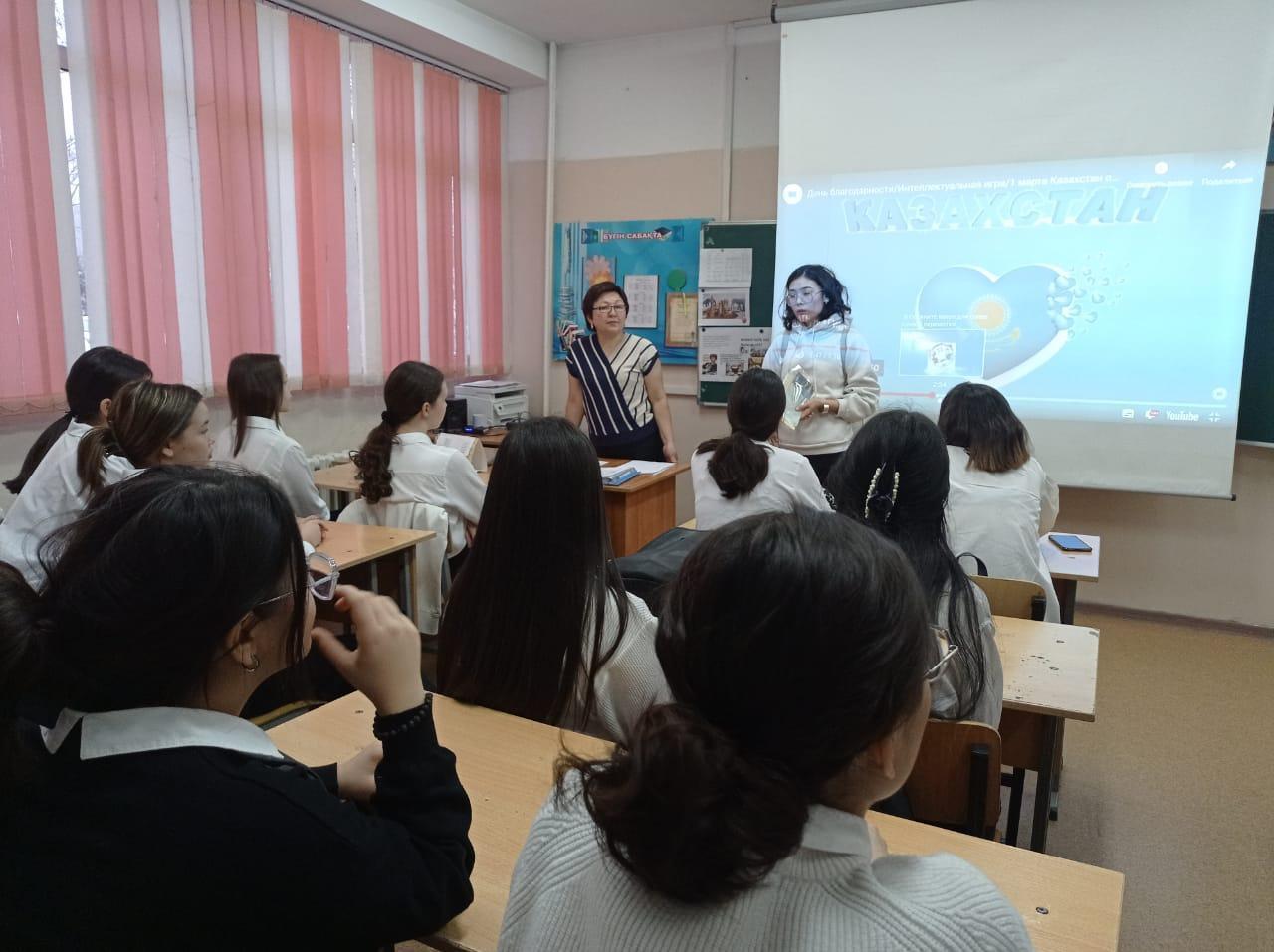 28 февраля 2023 года гимназию посетила выпускница Гимназии №83 2012 года Зарина Шайпитен, преподаватель корейского языка «Лингвистического колледжа при КазУМО и МЯ».