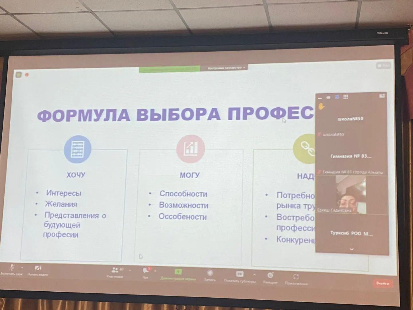 Сегодня, в актовом зале гимназии прошла онлайн встреча на тему "Выбор профессии". Приняли участие 275 учащихся 9-11 классов.