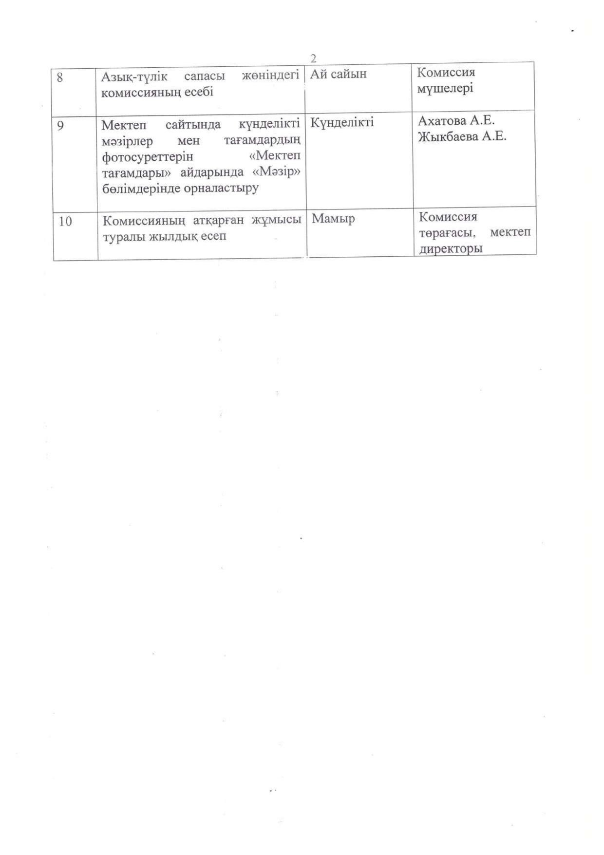 » Тамақ өнімдерінің сапасын бақылау жөніндегі комиссияның жұмыс жоспары