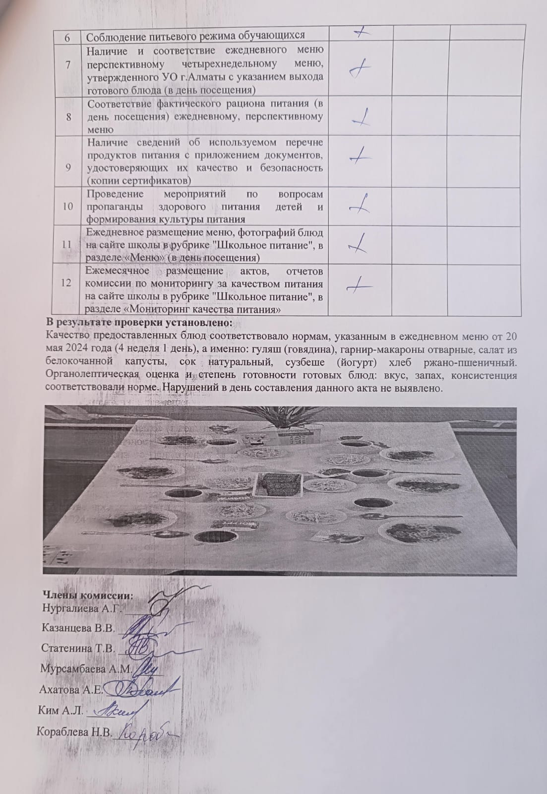 Акт проверки школьной столовой комиссией по мониторингу за качеством питания