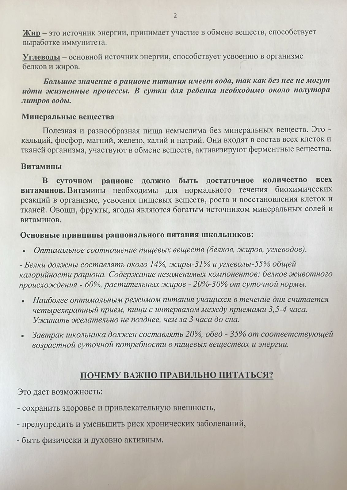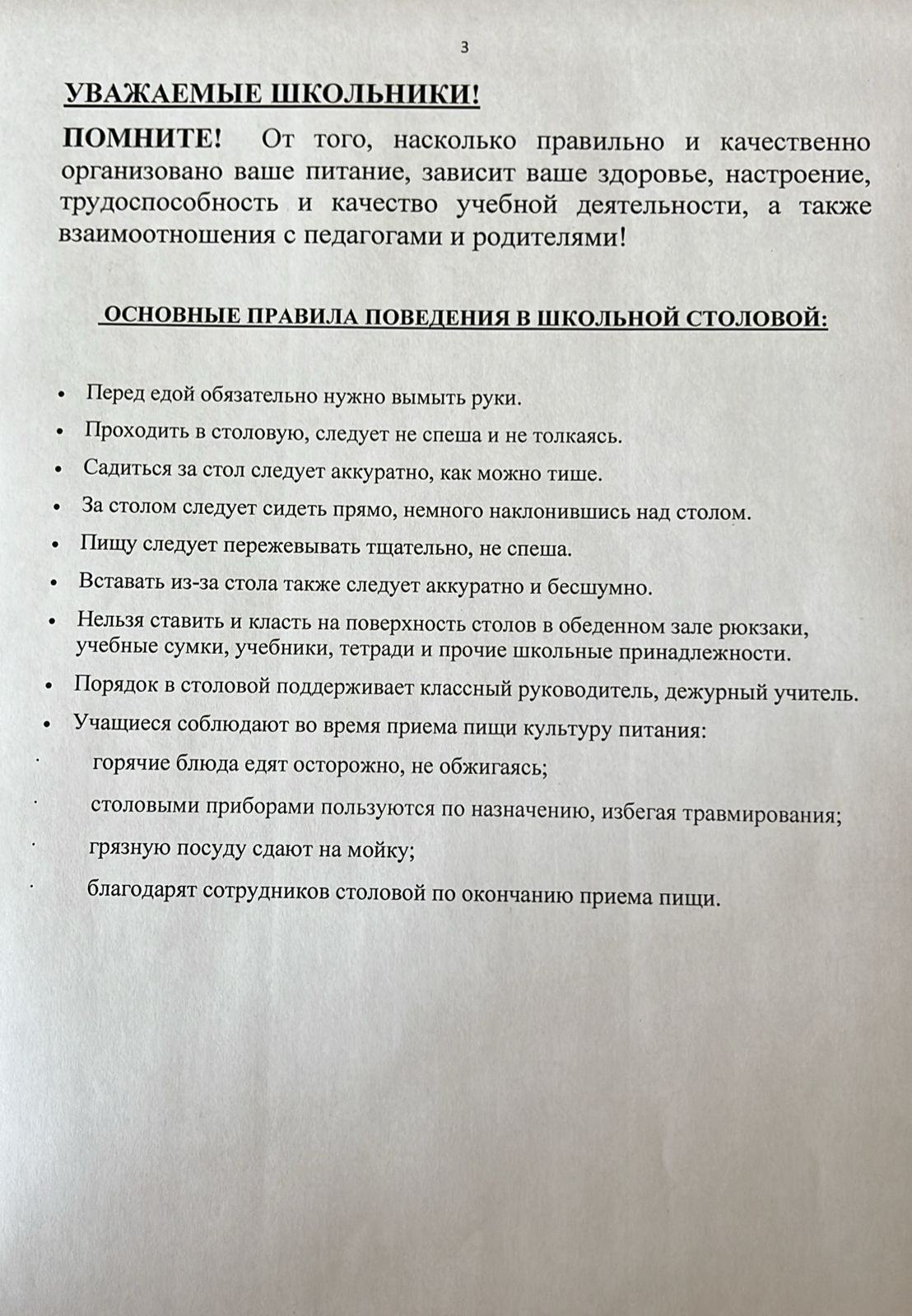 » Оқушылардың тамақтану мәдениеті туралы жадынама