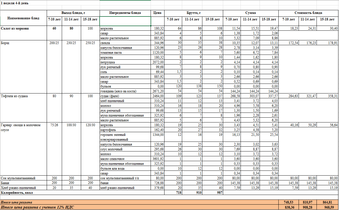 Четырехнедельное меню блюд зима-весна для организации бесплатного питания отдельных категорий обучающихся в организациях среднего образования