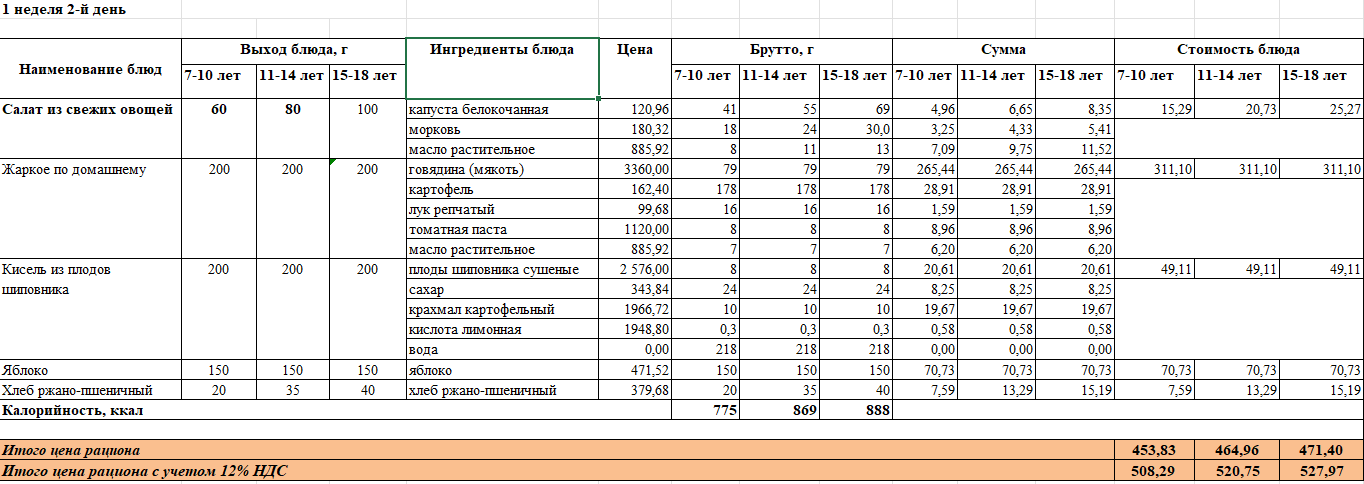 Четырехнедельное меню блюд зима-весна для организации бесплатного питания отдельных категорий обучающихся в организациях среднего образования