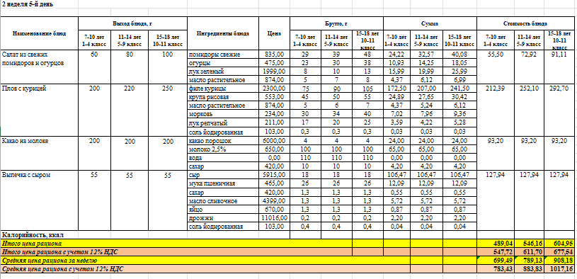 Тамақтың мәзірі мен фотосы